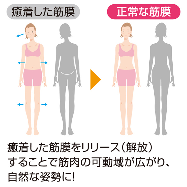 ・癒着した筋膜をリリースすることで筋肉の可動域が広がり自然な姿勢に!ローラーの凸凹が垂直に筋肉にアプローチ。