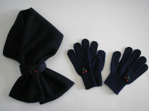 こどもフリースマフラー&手袋 キッズフリースマフラー&手袋 (紺・さくらんぼ刺繍入り)【セット商品】入園 入学 幼稚園 保育園 小学校(詳細)