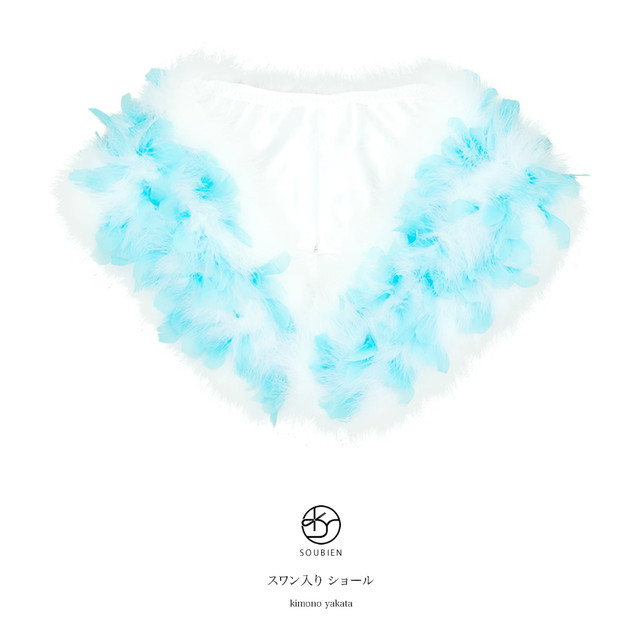 成人式 ショール 白 ホワイト 水色 ブルー 羽毛 フェザー 七面鳥 ターキー 白鳥 スワン 振袖向け 成人式向け ドレス パーティー 和装小物 和洋兼用 女性用 レディース