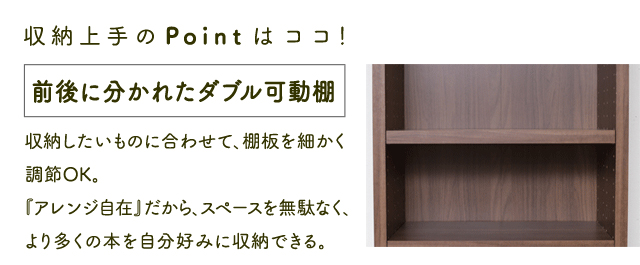 可動棚を上下・前後で調整することができ、収納するものに合わせて高さを調節することが出来ます。