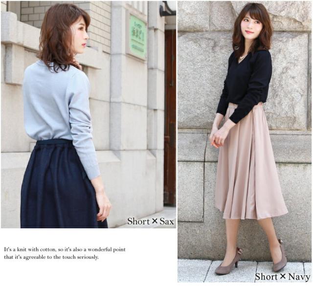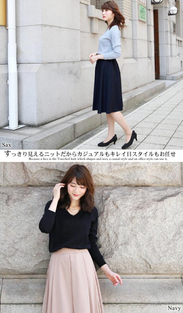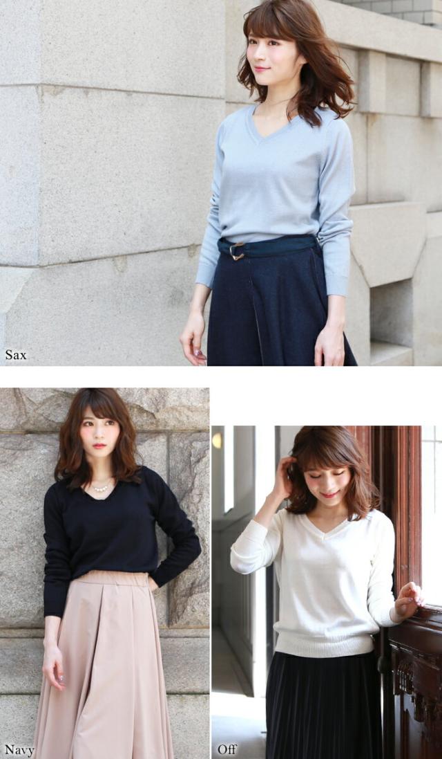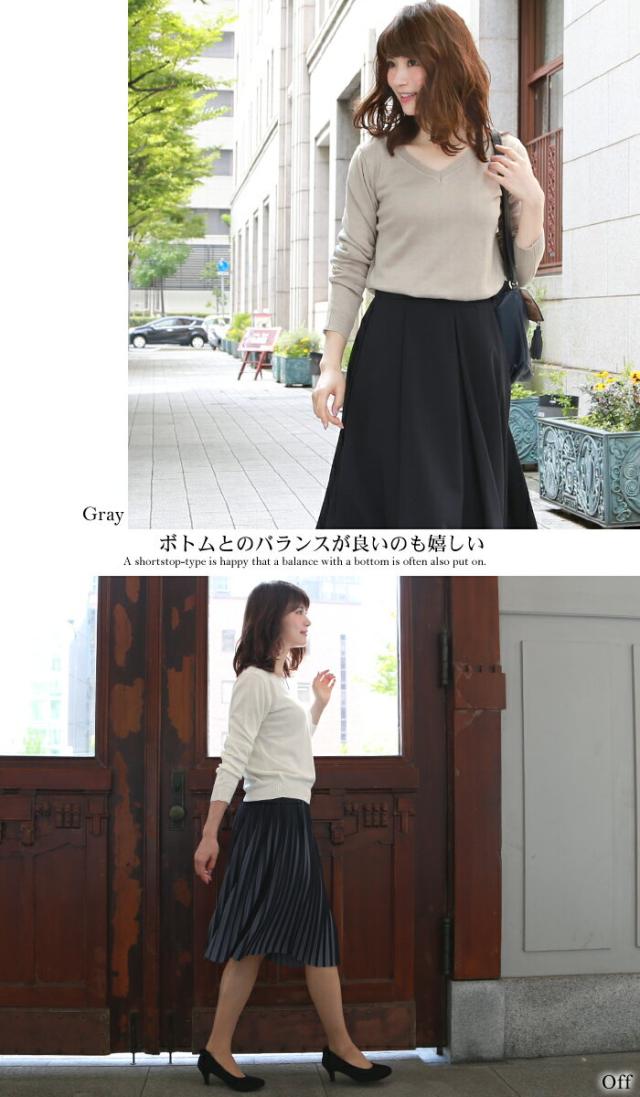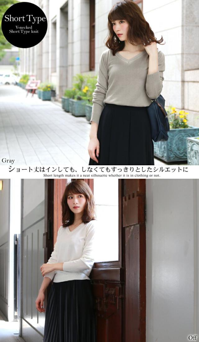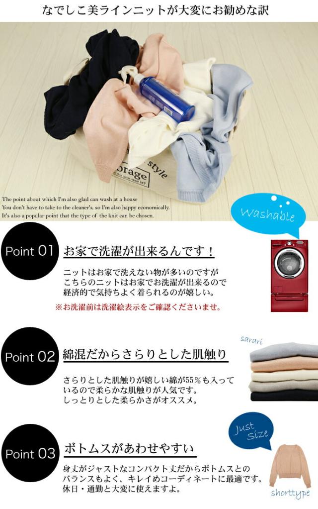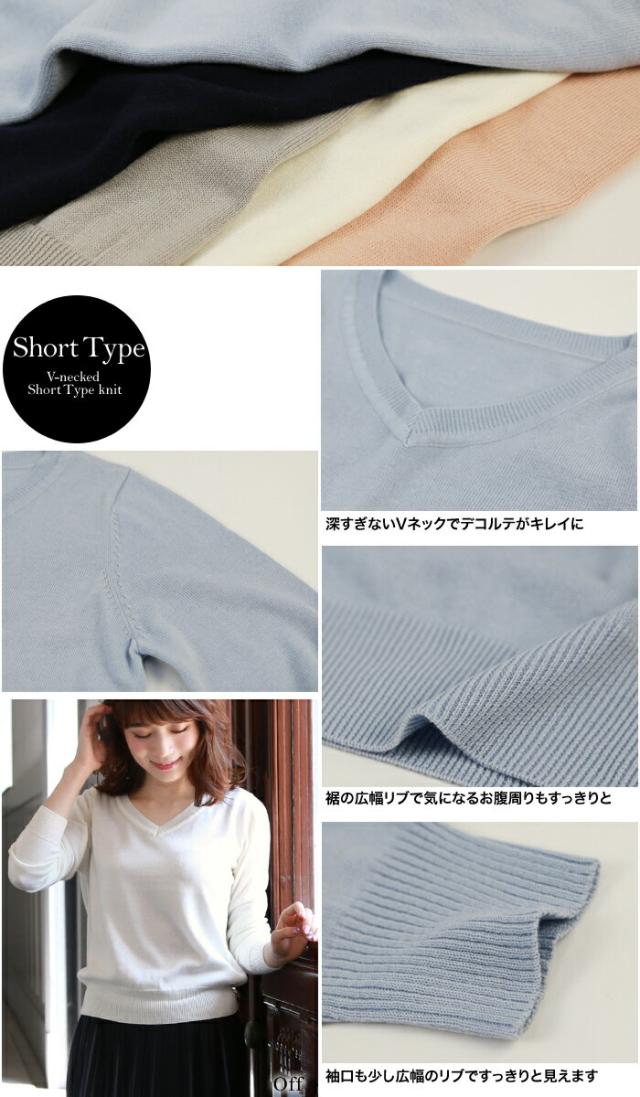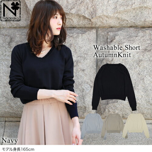 「なでしこ」 Vネックウォッシャブルシンプル美ラインショートニット レディース 秋冬 Vネック ウォッシャブル