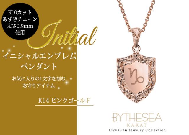 ゴールド ネックレス ハワイアンジュエリー ネックレス イニシャル ピンクゴールド ネックレス 刻印 無料 誕生石入れ可 エンブレム型 イニシャル K14ピンクゴールド K10カットあずきチェーン太0.9mm ギフトラッピング可能 プレゼント 成人祝い 【品番:CG-GP111R-228SDC4】