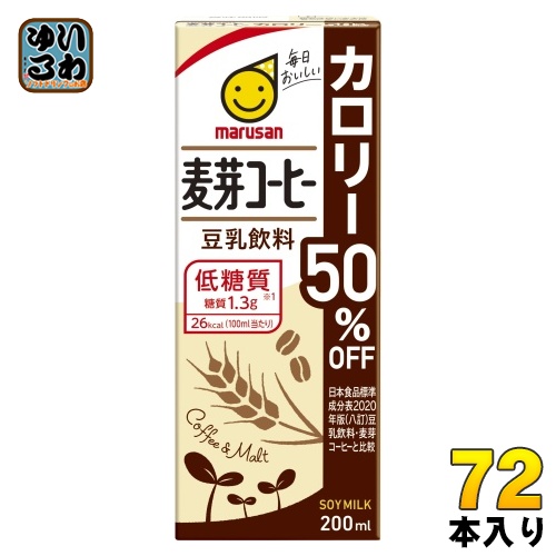 マルサンアイ 豆乳飲料 麦芽コーヒー カロリー50%オフ 200ml 紙パック 72本 (24本入×3 まとめ買い) イソフラボン 低糖質