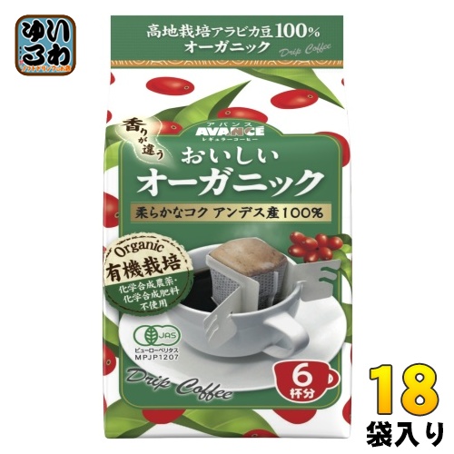 国太楼 アバンス おいしいオーガニック ドリップコーヒー 6杯×18袋 (6袋入×3 まとめ買い) 珈琲 有機栽培