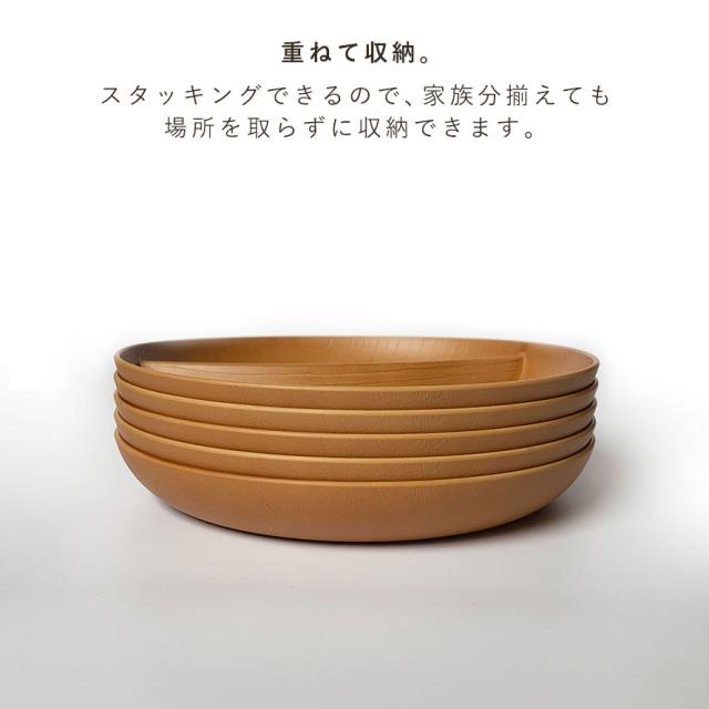 ナチュラルな天然木のようなサークルプレート。家庭用電子レンジ、食器洗い乾燥機対応の合成漆器です。
