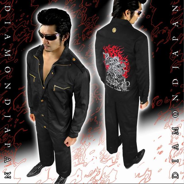(上着単品販売用)072黒*白 和柄 不動明王刺繍 作業着 大きいサイズ オラオラ系 ヤクザ ヤンキーチンピラ チョイ悪 派手 メンズ 作業 服 悪党の店 バースジャパン BIRTHJAPAN