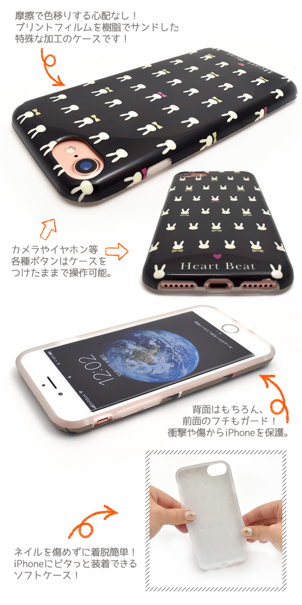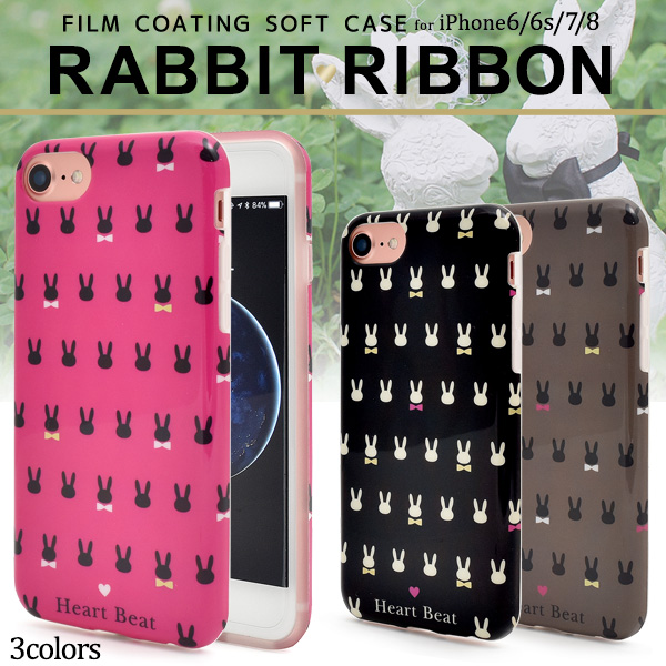 iPhone6/iPhone6s/iPhone8/iPhone7/iPhoneSE(第2世代・第3世代)用うさぎリボン柄ソフトケース