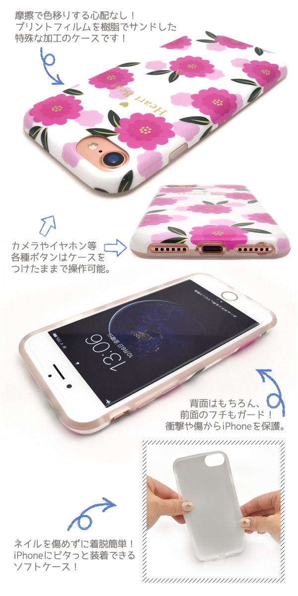スマホカバー スマホケース アイフォン シックスエス 青 白 黒 ピンク ビビットピンク ビビッドピンク フラワー 花 キュート ハート かわいい ソフトケース