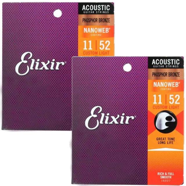 〈2set〉Elixir 16027 ACOUSTIC NANO WEB Phosphor Bronze Custom Light 11-52 アコースティックギター弦〈エリクサー〉