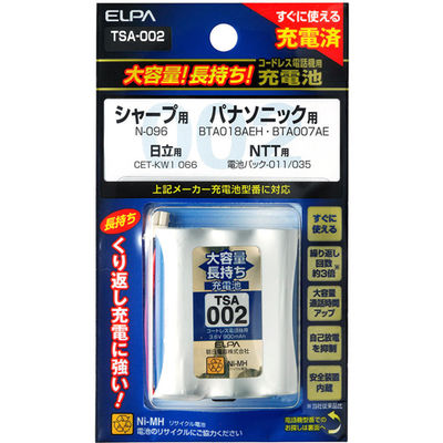 【メール便での発送商品】 電話機・子機用大容量長持ち充電池(シャープ・パナソニック・日立・NTT用) ELPA TSA-002【送料無料】 (TSA002)