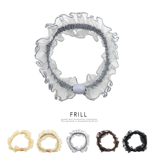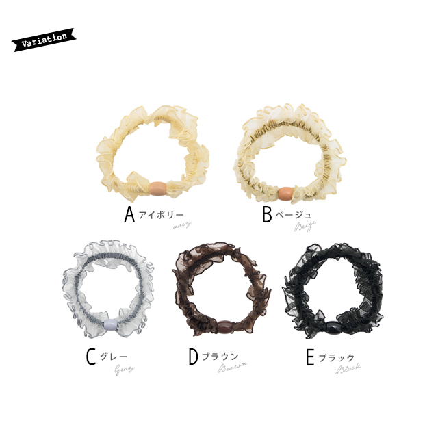 【オーガンジー素材のレースが上品なシンプル無地ヘアゴム】大人/上品/オフィス/ヘアアクセサリー