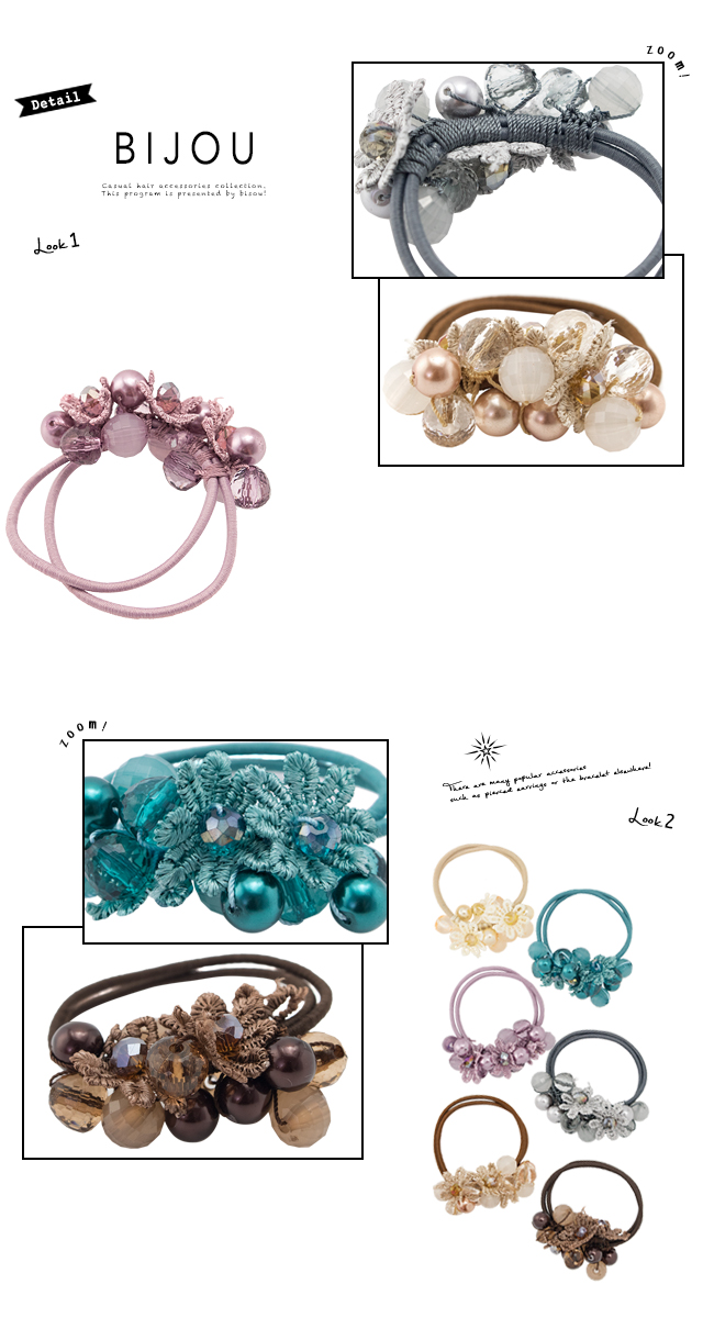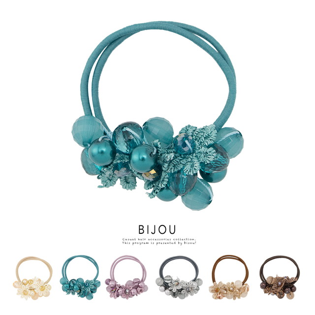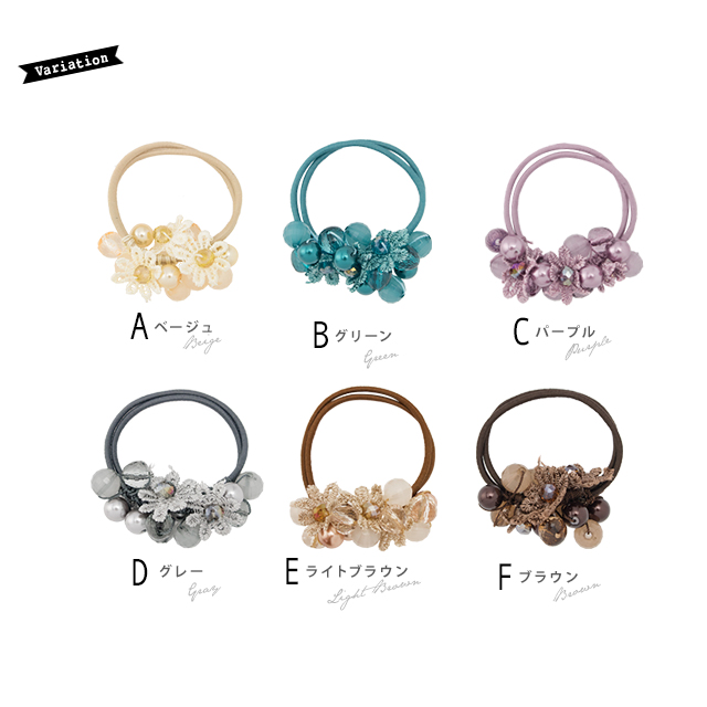 【アースカラーの色合いが大人女子なフラワーとビーズのガーリーヘアゴム】パール/ヘアアクセサリー