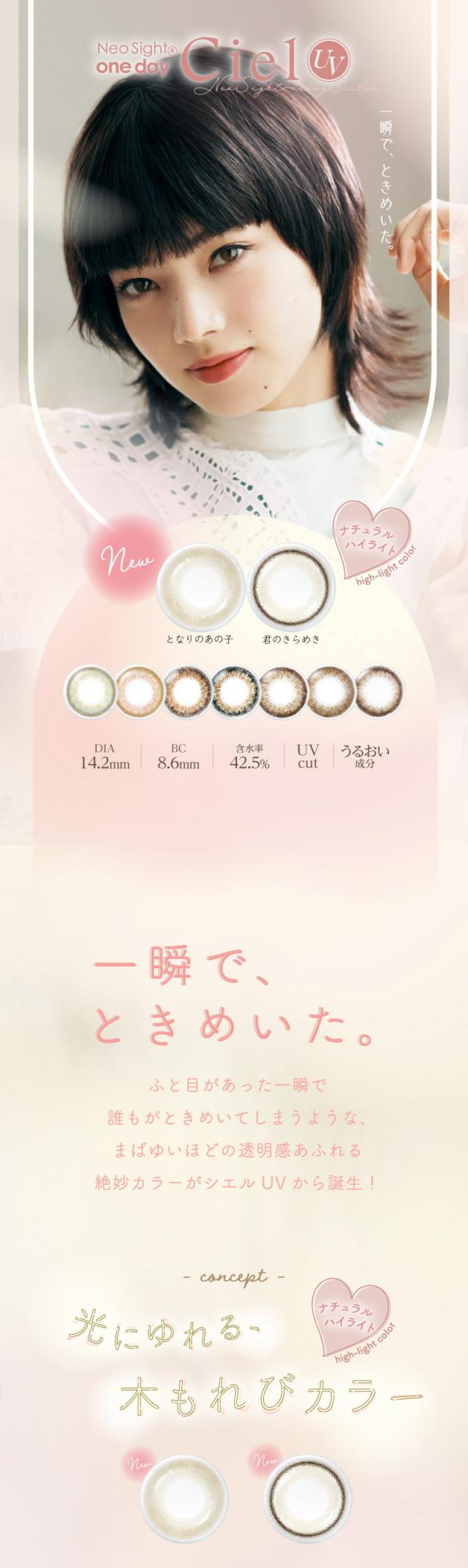 カラコン ネオサイト ワンデー シエル UV 1箱30枚 度あり 度なし neosight 1day ciel UV Moist 1日使い捨て カラーレンズ ネオサイトシエル Ciel 裸眼風 自然 モイスト ナチュラル サークル リング きらきら ハーフ 色素薄い系