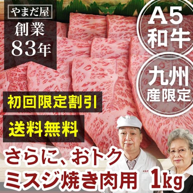 初回限定 送料無料 15%OFF 九州産 黒毛和牛(佐賀牛 宮崎牛)高級 牛肉 国産牛 和牛 A5 5等級 焼肉 極上カルビ みすじ ミスジ 1kg
