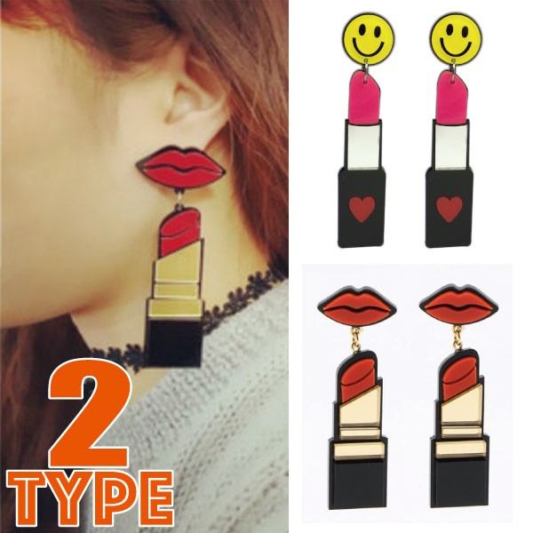 可愛いアイコンがトップについた口紅モチーフのアクリルピアスです♪