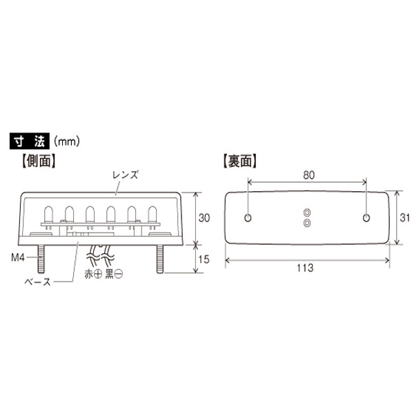 ヤック/YAC 流星Re6LED車高灯 クリア/レッド DC24V アクリル製クリアレンズ 高輝度LED6個 トラック CE-243