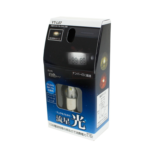 ・「YT-L07B 流星光 BA15s 24V バルク 電球色」はパッケージレス仕様/10個入箱。