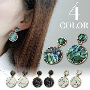 マーブルストーン メタル ピアス モダンテイスト メタルピアス 石 ストーン マーブル シェル 貝 サークル 送料無料 761002