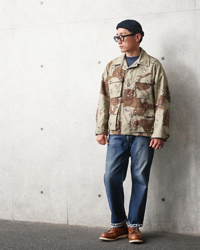米軍実物放出品の湾岸戦時に採用された通称「チョコチップ」又は「6カラーデザートカモ」と呼ばれる米軍において、初めて採用された砂漠用迷彩柄のBDUジャケットです。今では現地の市場でもほとんど見ることが無くなってきた6Cデザート!湾岸戦の海兵隊を題材とした映画「JARHEAD(ジャーヘッド)」でも登場する米軍の初代デザート迷彩柄です。