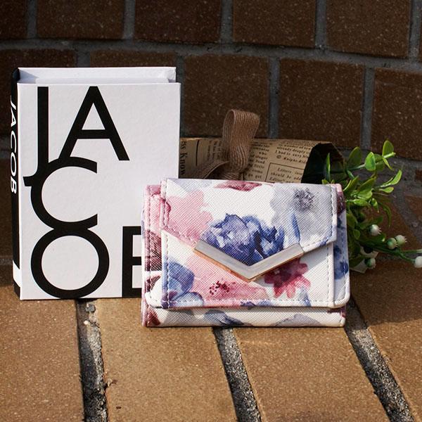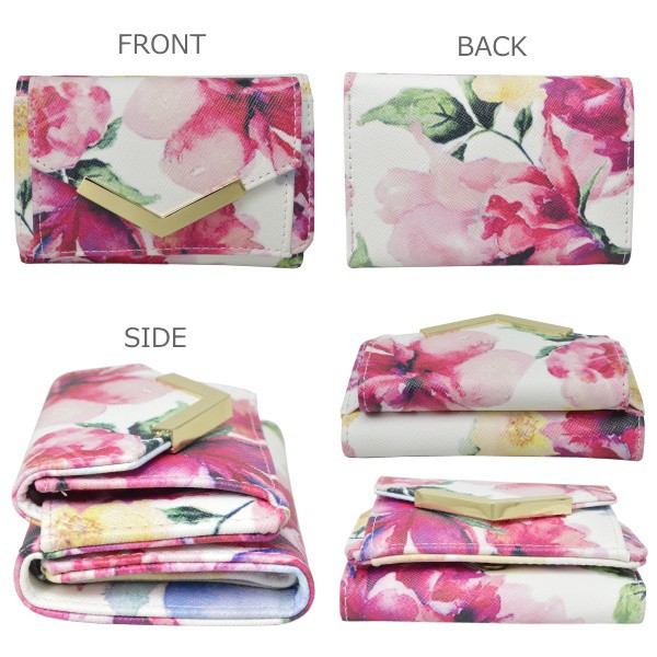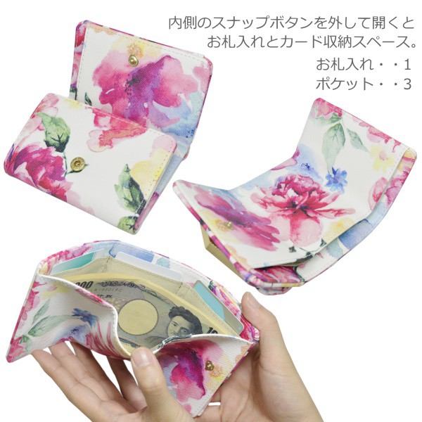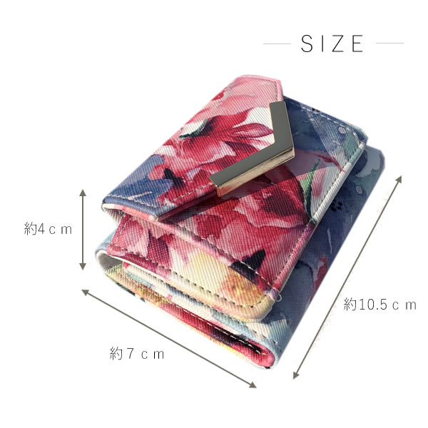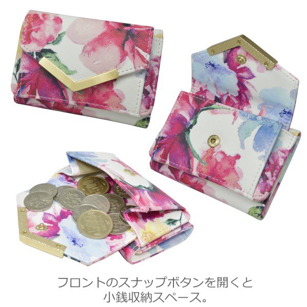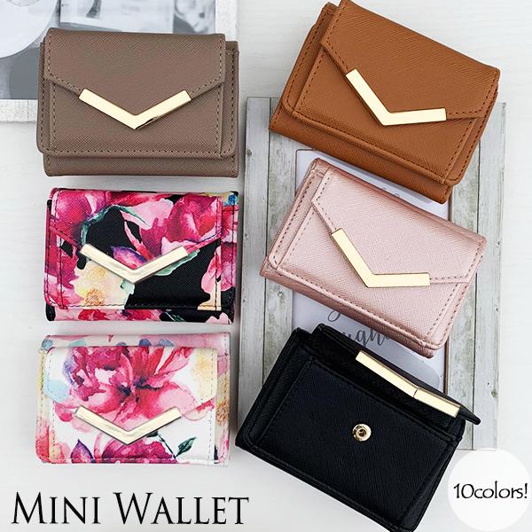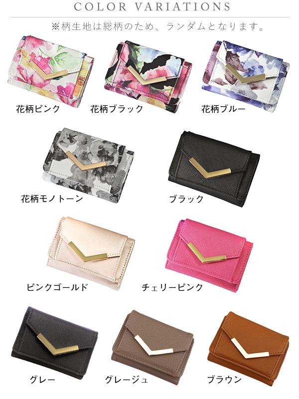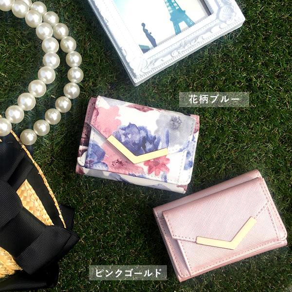 ミニ財布 三つ折り財布 レディース 小さい 財布 花柄 ボタニカル コンパクト カード入れ 小銭入れ 極小 手のひらサイズ ミニウォレット フラワー 無地 ゴールド みつおり 旅行 プレゼント ギフト 母の日 在庫処分