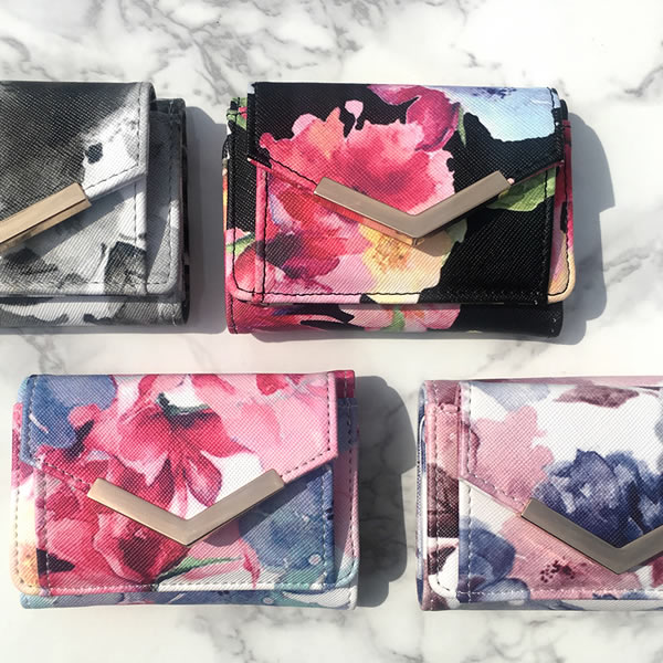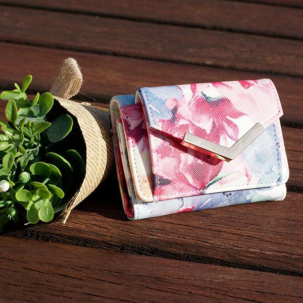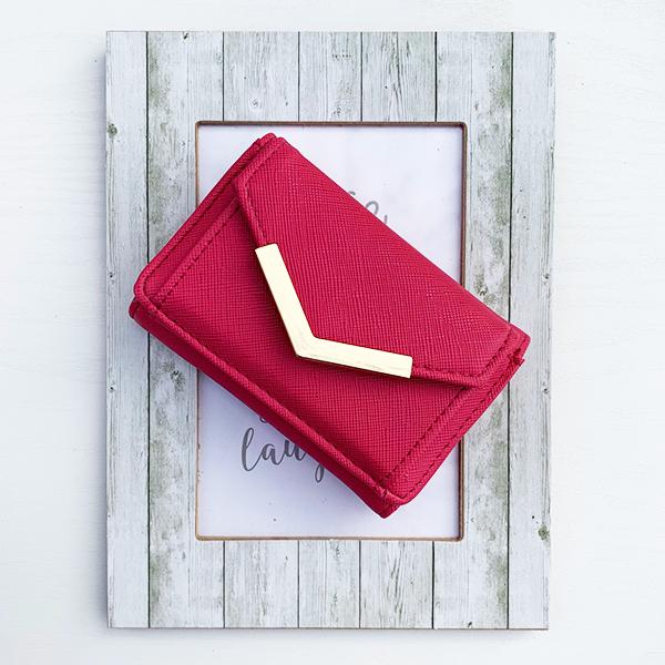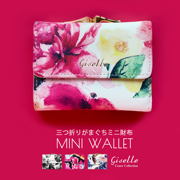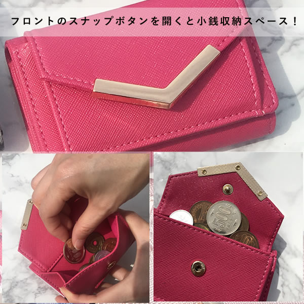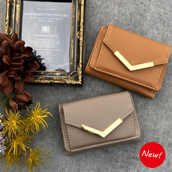 持ち運びしやすい、ちょっとそこまでのお出かけにも便利な三つ折りミニウォレット財布です。