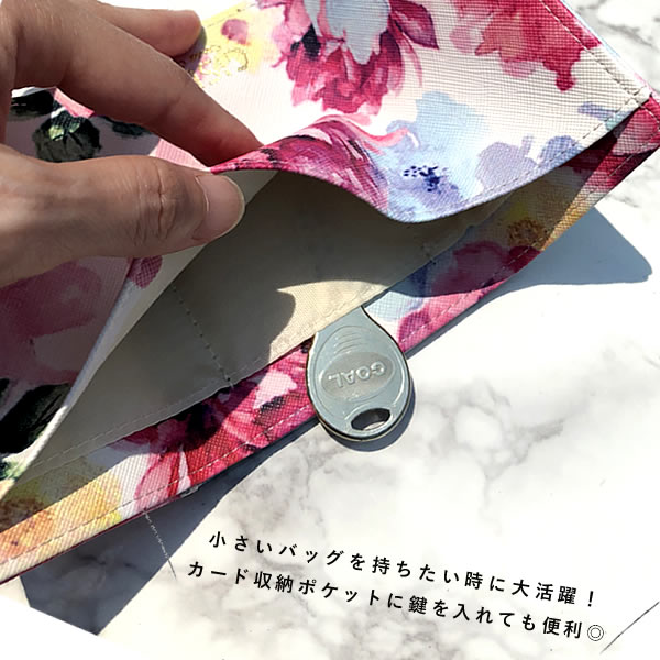 - 手のひらサイズが欲しくて探していましたが、丁度良いのが見つかりました。花柄もかわいいし満足しています。同じくカード入れもお揃いで購入しました。重宝しています。