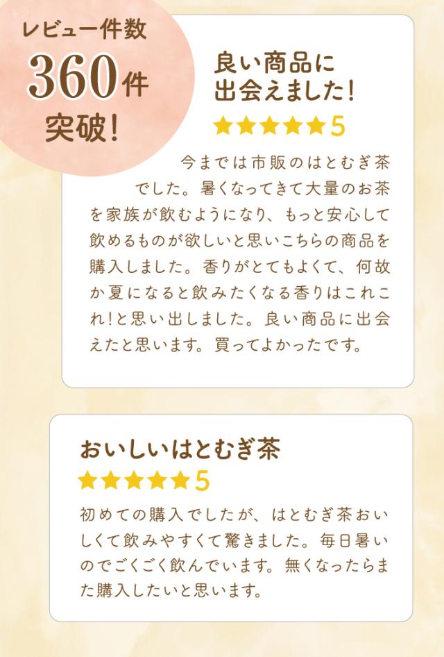 - はと麦茶は関節炎にも良いとのことで久しぶりに購入しました。1包を少量の熱湯で出してから500mlまで水を足して一晩冷やして飲むとスッキリと香ばしさが丁度良くて美味しいです。