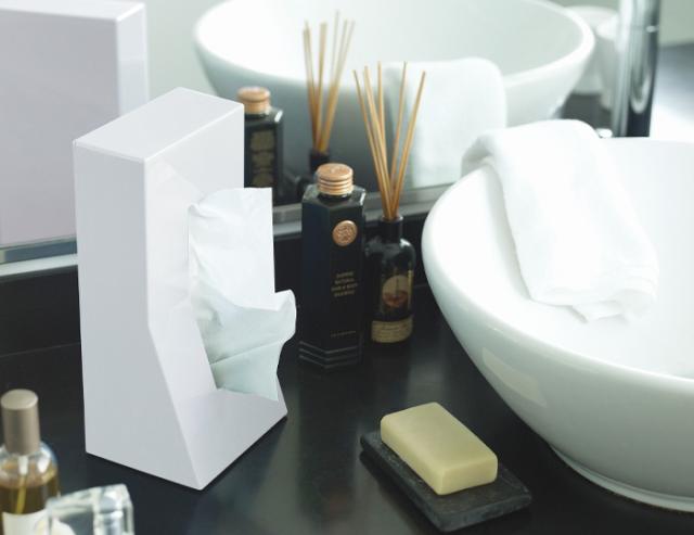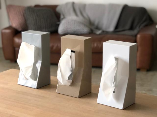 横置きが定番のティッシュケースを縦置きにしたら、とってもすっきり省スペースになりました。縦にしたことにより、横置きに比べ最後までティッシュをよりスムーズに引き出せます。また、底面が広がっているデザインなので安定感があり、ティッシュを引く力程度では倒れません。スタイリッシュでシンプルなデザインは、置く場所を選ぶことなくシーンを彩ります。
