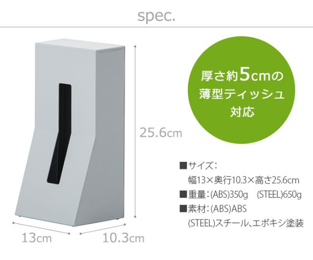 | アルコール・ベンジー・シンナー・除光液の付着にご注意ください。変形、変色の原因となります。 直射日光、冷暖房が直接当たらない場所に置いてください。 対応サイズ以外のティッシュボックスは収容が困難な場合があります。 |