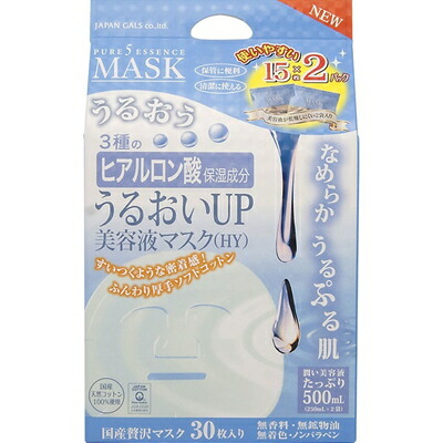 ピュアファイブ エッセンスマスク うるおいアップ美容液マスク ヒアルロン酸 15枚×2パック *ジャパンギャルズ/3種類のヒアルロン酸と10種類の植物由来原料を配合/とろーり濃厚な美容液/うるおいUPのシートマスク