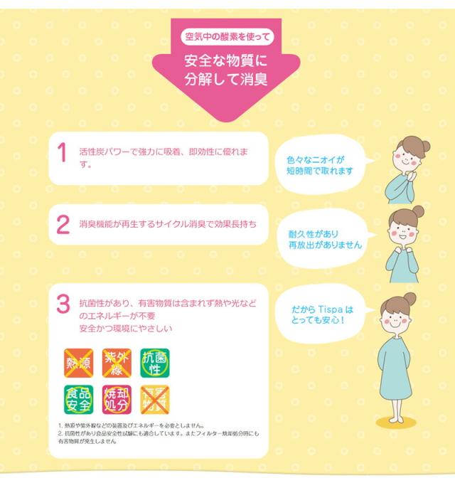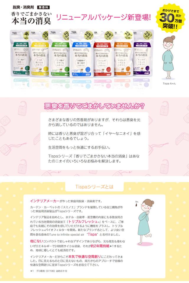 ティスパ 香りでごまかさない本当の消臭 くつ用 2個 *住江織物/活性炭付着特殊フィルターAg+銀イオンに特殊人工酵素を加え臭いの物質を素早く吸着/化学的に無臭の物質に変え触媒作用で消臭効果長続き/臭いの再放出なし/靴内の浮遊菌を除菌/Tispa 靴 靴用品 消臭剤 除湿剤
