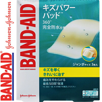 バンドエイド キズパワーパッド 保護用 ジャンボ 6.2cm×7cm 3枚 *ジョンソン・エンド・ジョンソン/キズを早く治すハイドロコロイド素材絆創膏/体内から集まる傷を治す成分をゲル状にして傷口に保持/傷が治るための最適な環境作り皮膚の自然治癒力を高め痛みを和らげ早く治す