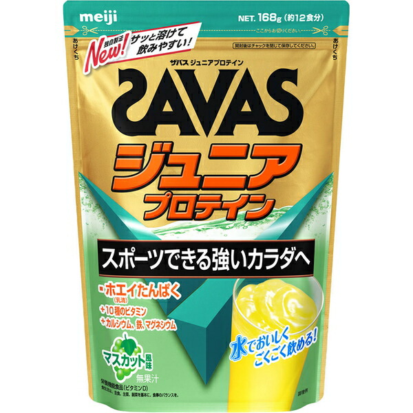 ザバス ジュニアプロテイン マスカット風味 168g *明治/スポーツ後に水で美味しくごくごく飲める/牛乳生まれホエイプロテイン100%/成長期に欠かせないカルシウム・鉄・マグネシウム・ビタミンD含む10種のビタミン/朝食・おやつに