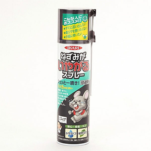 ねずみ忌避剤 ねずみがいやがるスプレー 320mL *イカリ消毒/屋根裏・床下のネズミ追い出し/侵入防止/天然ハッカ油/特殊な強力ノズル/強力ハッカ臭を遠くまで噴射できる/水性液剤/火気危険性を軽減/忌避剤 虫除け 殺虫剤 害虫駆除 ネズミ 殺鼠剤