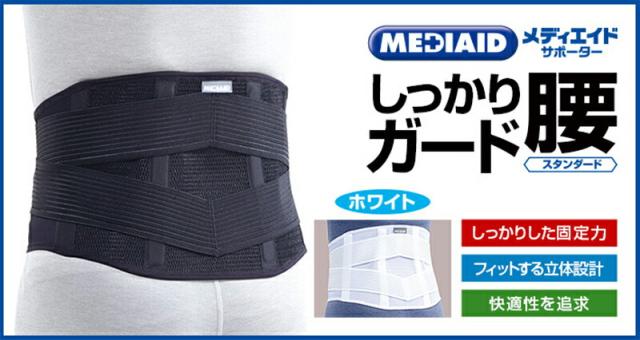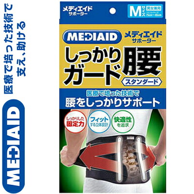 メディエイドサポーター しっかりガード 腰 スタンダード ブラック Mサイズ/75-85cm 1枚 *日本シグマックス/医療で培った技術で腰をしっかりサポート/しっかりした硬質メッシュ/S字軽量ステーが腰を的確にホールド/補強ベルトがサポート力を高めます/立体設計でズレにくく腰にフィット