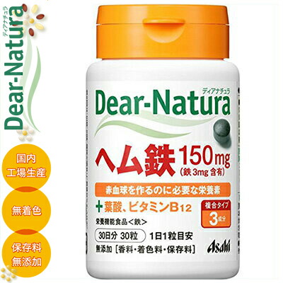 ディアナチュラ ヘム鉄 withサポートビタミン2種 30粒 *栄養機能食品 アサヒグループ食品/鉄の栄養機能食品/鉄は赤血球を作るのに必要な栄養素です/葉酸、V.B12も配合/鉄不足が気になる方に/香料・着色・保存料は不使用 サプリメント 葉酸 鉄 貧血 マタニティ ママサプリ