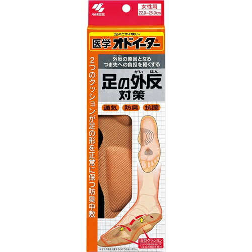 医学オドイーター 外反母趾対策 女性用 1足分 *小林製薬/足のアーチ支える2つのクッション/女性用消臭中敷き/ショック吸収機能/外反の原因/つま先負担 軽減/足が窮屈にならない厚さ2mm/薄型設計/履き心地/吸収性/通気性/抗菌/防臭効果
