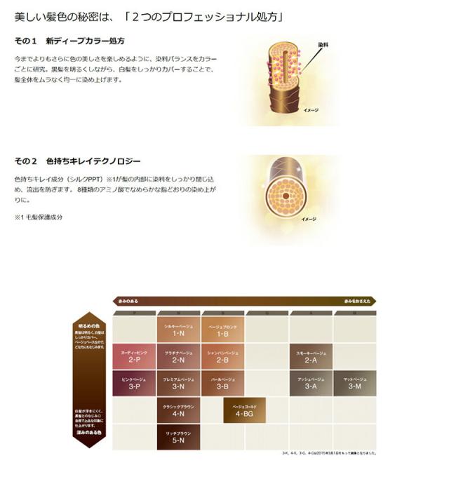 今までよりさらに色の美しさを楽しめるように、染料バランスをカラーごとに研究。黒髪を明るくしながら、白髪をしっかりカバーすることで、髪全体をムラなく均一に染め上げます。