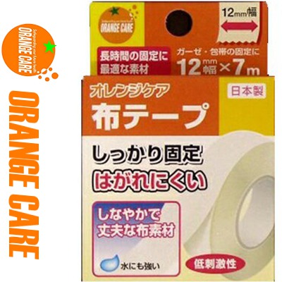 オレンジケア 布テープ 1.2cm×7m 1巻 *オレンジケア/しっかり固定してはがれにくい布テープ/濡れても水に強く/しなやかで丈夫な布素材/手で簡単に切れるのではさみ不要/長時間の固定に適しています/低刺激性/ガーゼ・包帯の固定に