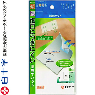 ファミリーケア 滅菌パッド Lサイズ 6cm×10cm 5枚 *白十字 FAMILY CARE 救急用品 絆創膏 ばんそうこう バンドエイド 切り傷