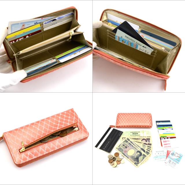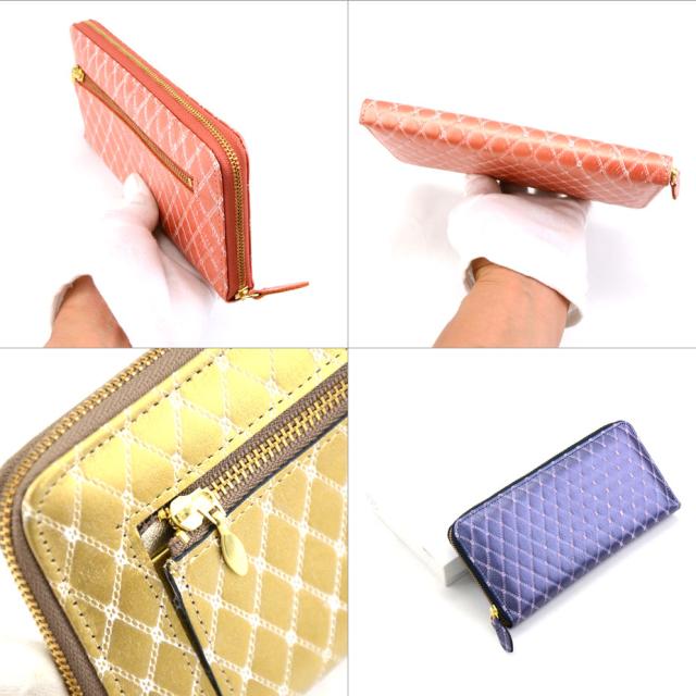 名称:キルティングパール型押しレザーラウンドファスナー長財布