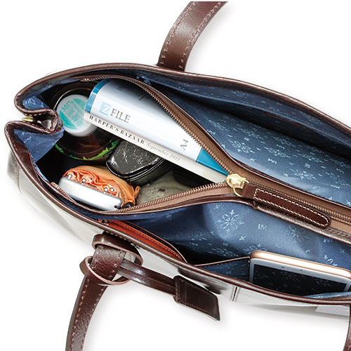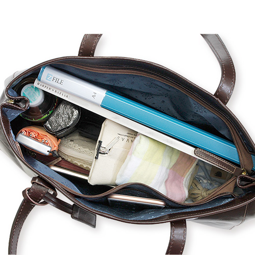 A4ファイルやビジネス書類を余裕を持って収納できるので、通勤バッグ、お仕事を中心としてはもちろん、普段使いやショッピングトートとしてもご愛用頂けます。
