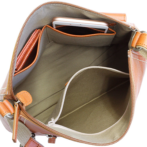![]() | 内部には小物・スマホ・ファスナー付ポケットが各一つ |