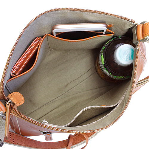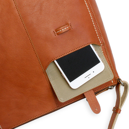 | ナチュレシンボルクロスレザーをあしらったハーフ丈のポケットは底までの深さがございます。 | ![]() |