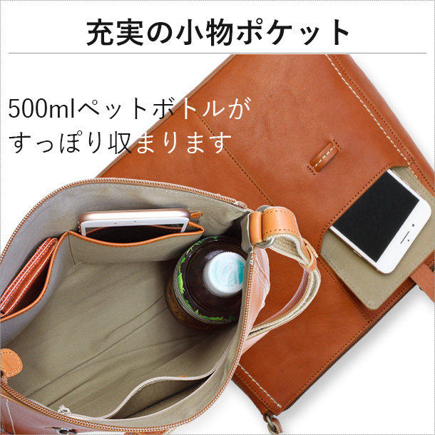 ![]() | 柔らかく、そしてハリのある牛革素材。 タンニン100%なめしで使うほど味のでるショルダーバッグです。 |