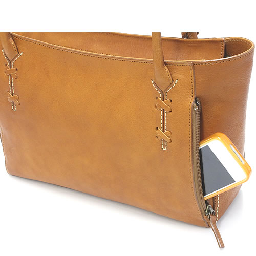 しっかりと厚みのある牛革素材を使用し、手作りゆえの丁寧な縫製から生まれたバッグです。