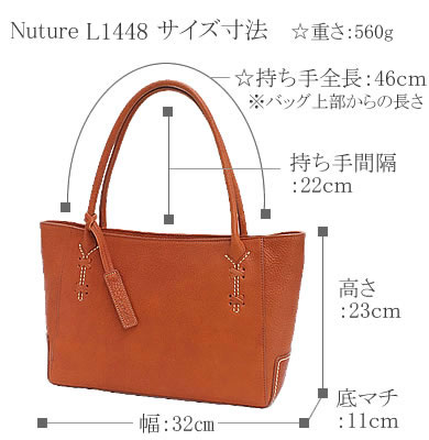 シンプルなナチュレシリーズの革トートバッグです。シリーズの中では中間の大きさのL1448。