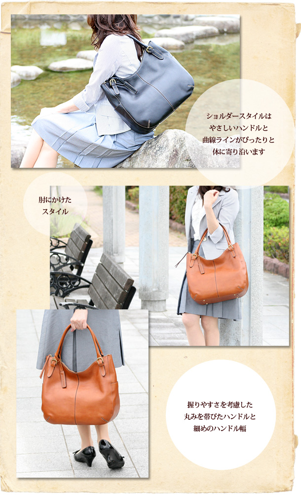 女性らしさを極めた美しいトートバッグは、革素材、縫製、至る所に使いやすさが考慮され機能性も充実。