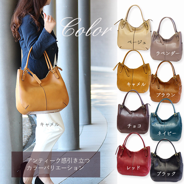 シンプルなトートバッグながら、個性的に、機能的に満足できる、職人こだわりのンティーク調本革トートバッグです。