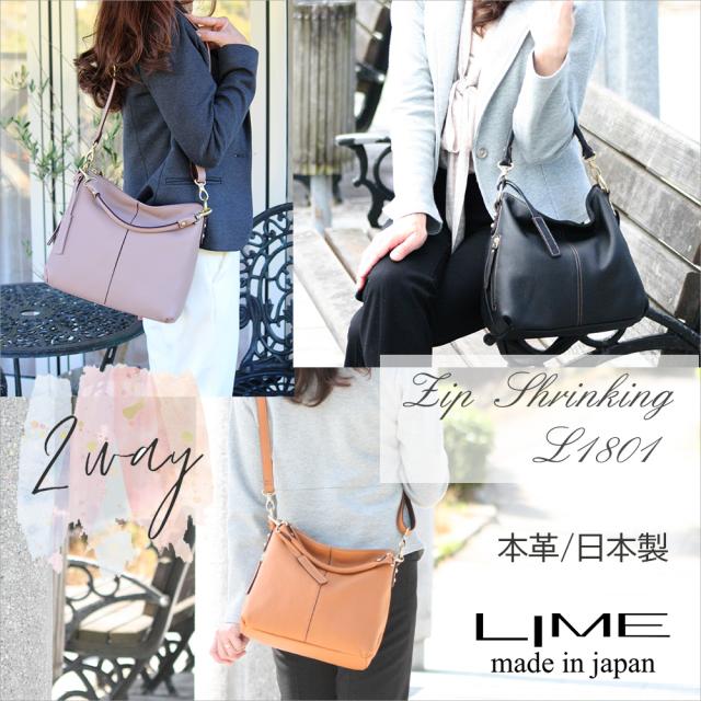 ショルダーバッグ レディース 斜めがけ 本革 2way 2ウェイ ハンドバッグ 革 レザー 通勤 通学 旅行 旅 シュリンクレザー 女性用 バッグ 斜め掛け ななめ掛け シンプル 使いやすい 軽量 機能的 ライム ジップシュリンク L1801 ブランド 軽い 卒業式 母の日 大容量 ギフト